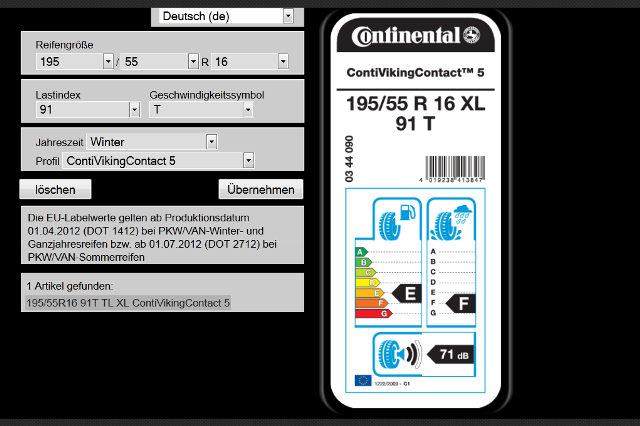 Sie haben Ihre Labeldaten nicht zur Hand? Oder Ihr Kunde möchte Labelwerte eines ganz spezifischen Reifens erfahren. Kein Problem, wenn es sich um Pneus von Continental handelt. Denn der Reifenhersteller hat eine Suchmaske online gestellt, über die Sie schnell und zuverlässig alle Labelwerte für Reifen dieses Herstellers herausfinden können.